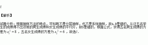 名女生,随机询问了该班五名男生和五名女生在某次数学测验中的成绩,五名男生的成绩分别为