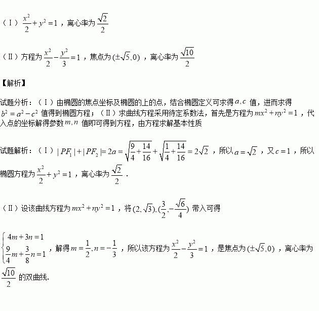 (Ⅱ)某圆锥曲线以坐标轴为对称轴,中心为坐标原点,且过点