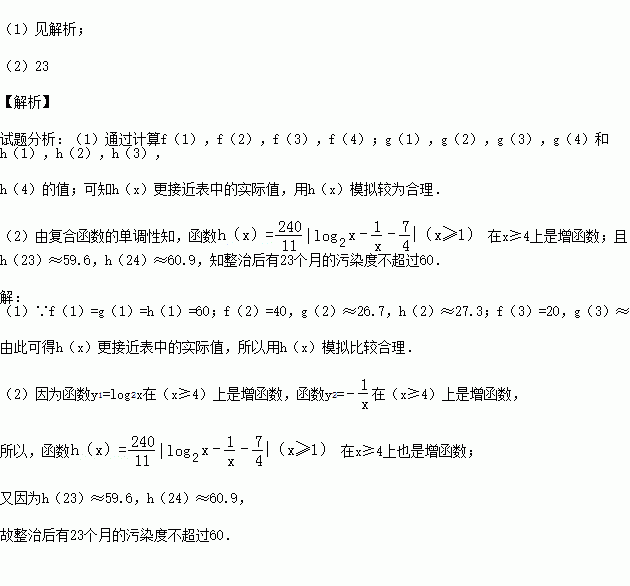 ,其中x表示月数,f(x)、g(x)、h(x)分别表示污染度.
