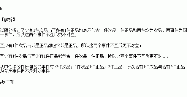 有5件产品,其中3件正品,2件次品,从中任取2件,则互斥而不对立的两个事件是( )