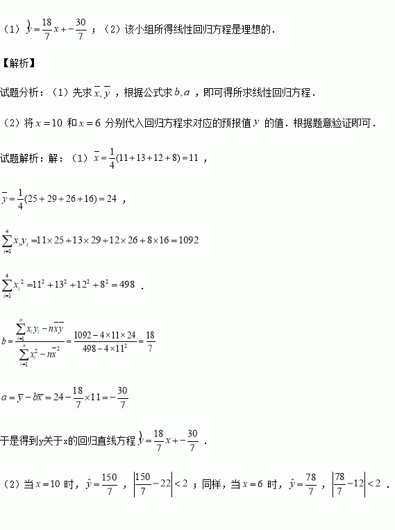 £¨2£©ÈôÓÉÏßÐԻع鷽³ÌµÃµ½µÄ¹À¼ÆÊý¾ÝÓëËùÑ¡³öµÄ¼ìÑéÊý¾ÝµÄÎó²î¾ù²»³¬¹ý2ÈË£¬ÔòÈÏΪµÃµ½µÄÏßÐԻع鷽³ÌÊÇÀíÏëµÄ£¬ÊÔÎʸÃС×éËùµÃÏßÐԻع鷽³ÌÊÇ·ñÀíÏë?