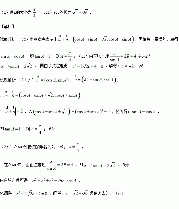 (2)若△ABC外接圆的半径为2,b=2,求边c的长.