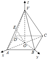 解:以O为原点,OA为x轴,OB为y轴,OV为z轴,建立空间直角坐标系,
