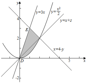 当l与抛物线y=$\frac{1}{2}$x2相切时,z取得最小值,