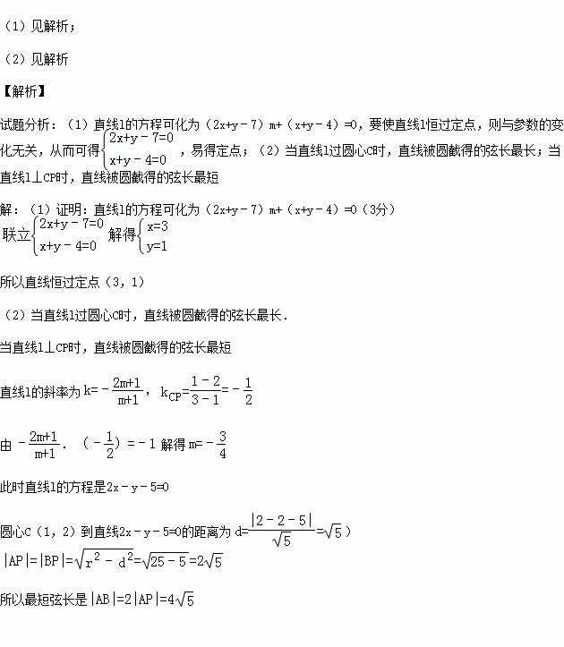 (2)判断直线l被圆C截得的弦长何时最长,何时最短?并求截得的弦长最短时,求m的值以及最短长度.