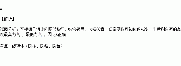 四位好朋友在一次聚会上,他们按照各自的爱好选择了形状不同、内空高度相等、杯口半径相等的圆口酒杯,如下图所示,盛满酒后他们约定:先各自饮杯中酒的一半.设剩余酒的高度从左到右依次为