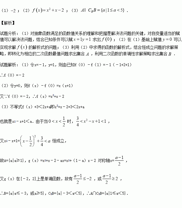 已知:函数f(x)对一切实数x,y都有f(x+y)﹣f(y)=x(x+2y+1)成立,且f(1)=0.