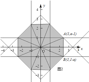 tan∠AOB=tan2∠xOA=$\frac{2tan∠xOA}{1-ta{n}^{2}∠xOA}$=$\frac{2(a-1)}{1-(a-1)^{2}}=\frac{2a-2}{2a-{a}^{2}}$=1,