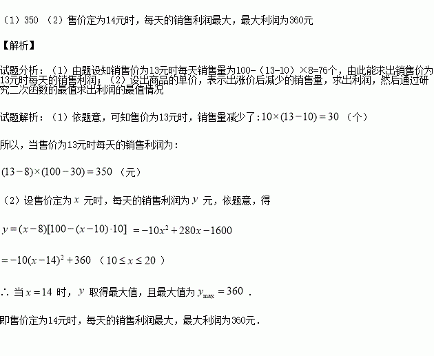 (1)求售价为13元时每天的销售利润;