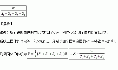 ,类比这个结论可知:四面体S—ABC的四个面的面积分别为S1,S2,S3,S4,内切球半径为R,四面体S—ABC 的体积为V,则R等于