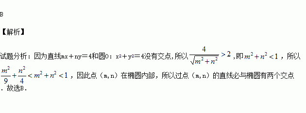 若直线mx+ny=4和圆O:x2+y2=4没有交点,则过点(m,n)的直线与椭圆