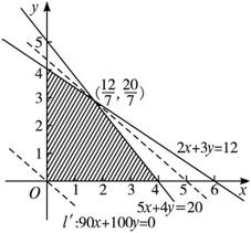 某工厂用两种不同的原料均可生产同一产品,若釆用甲种原料,每吨成本1 000元,运费500元,可生产产品90千克;若釆用乙种原料,每吨成本1 500元,运费400元,可生产100千克.若每日预算总成本不得超过6 000元,运费不得超过2 000元,问此工厂每日最多可生产多少千克产品?