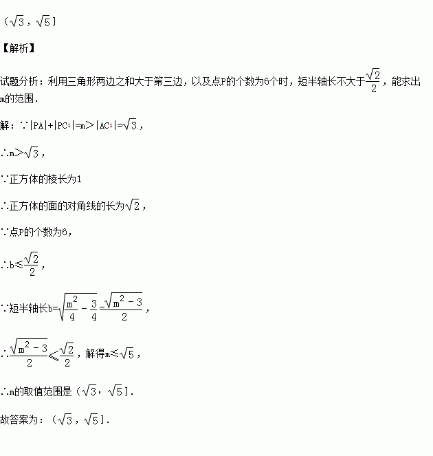 (2015•杭州校级模拟)在棱长为1的正方体ABCD﹣A1B1C1D1中,点P是正方体棱上的一点(不包括棱的端点),若满足|PB|+|PD1|=m的点P的个数为6,则m的取值范围是 .