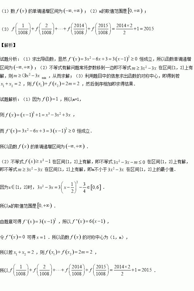 的对称中心.若m=1,试求