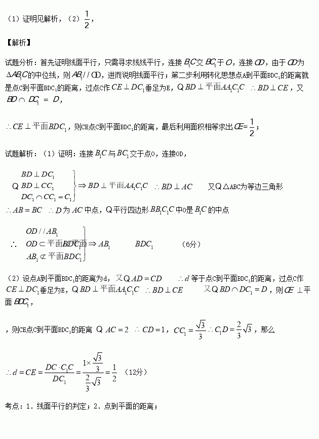 (2)求点A到平面BDC1的距离.