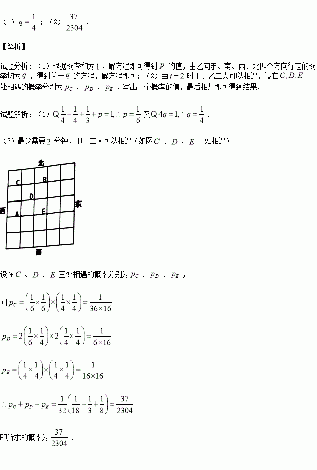 两处,两人同时以每一分钟一格的速度向东、西、南、北四个方向行走,已知甲向东、西行走的概率都为