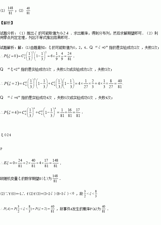 ,某植物研究所对该种子进行发芽实验,每次实验种一粒种子,每次实验结果相互独立,假定某次实验种子发芽则称该次实验是成功的,如果种子没有发芽,则称该次实验是失败.若该研究所共进行四次实验,设ξ表示四次实验结束时实验成功的次数与失败的次数之差的绝对值.
