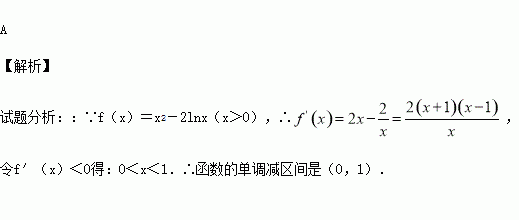 函数f(x)=x2-2lnx的单调递减区间是( )