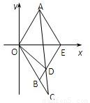如图,△AOE和△BOE都是边长为1的等边三角形,延长OB到C使|BC|=t(t>0),连AC交BE于D点.