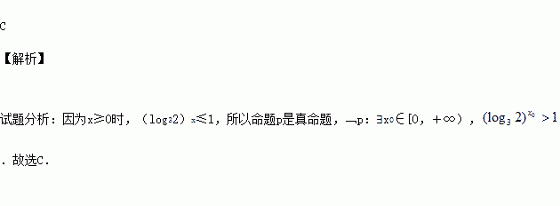 命题p:?x∈[0 , +∞), (log32)x≤1,则( )