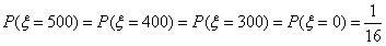 某公司为庆祝元旦举办了一个抽奖活动,现场准备的抽奖箱里放置了分别标有数字1000、800﹑600、0的四个球(球的大小相同).参与者随机从抽奖箱里摸取一球(取后即放回),公司即赠送与此球上所标数字等额的奖金(元),并规定摸到标有数字0的球时可以再摸一次﹐但是所得奖金减半(若再摸到标有数字0的球就没有第三次摸球机会),求一个参与抽奖活动的人可得奖金的期望值是多少元.