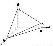 则A(4,0,0),B(0,4,0),D(0,4,1),E(0,0,4)