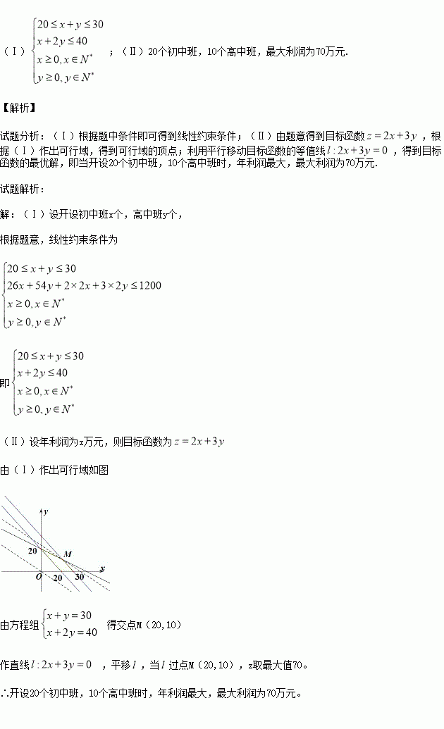 (Ⅰ)请用数学关系式表示上述的限制条件;(设开设初中班x个,高中班y个)