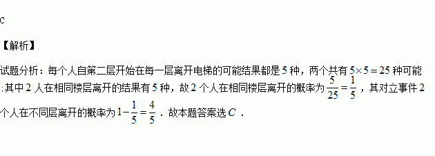 有2个人在一座6层大楼的底层进入电梯,假设每一个人都自第二层开始在每一层离开电梯是等可能的,则2个人在不同层离开的概率为( )