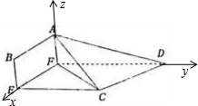 ∵$\overrightarrow{AP}$=λ$\overrightarrow{PD}$,∴$\overrightarrow{FP}=\frac{1}{1+λ}\overrightarrow{FA}+\frac{λ}{1+λ}\overrightarrow{FD}$=$\frac{1}{1+λ}(0,0,1)$+$\frac{λ}{1+λ}(0,5,0)$=$(0,\frac{5λ}{1+λ},\frac{1}{1+λ})$,