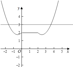 作出函数h(x)的图象如图:当y=3时,两个函数有2个交点,