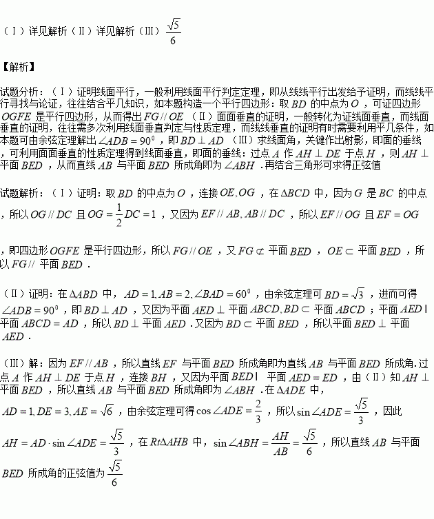 (Ⅰ)求证:FG||平面BED;