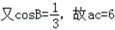 由b2=a2+c2﹣2accosB,可得a2+c2=12,
