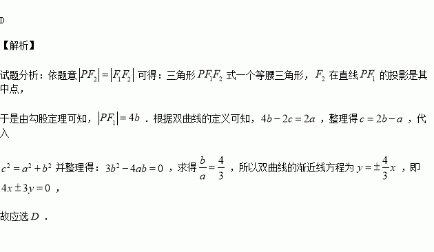 的距离等于双曲线的实轴长,则该双曲线的渐近线方程为 ( )