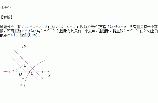 已知函数f(x)=且关于x的方程f(x)+x-a=0有且只有一个实根,则实数a的取值范围是________.