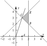 由$\left\{\begin{array}{l}x+y=4\\ x-y=-2\end{array}\right.$得$\left\{\begin{array}{l}x=1\\ y=3\end{array}\right.$,即C(1,3),