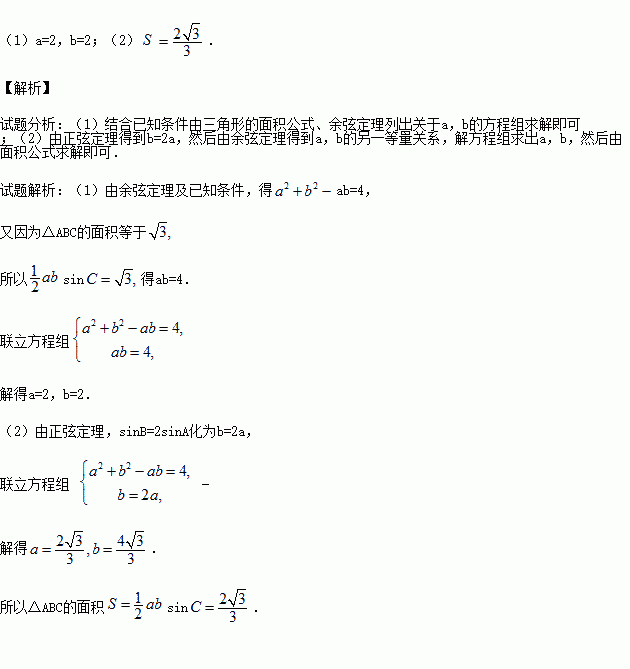 在△ABC中,内角A、B、C对边的边长分别是a、b、c.已知c=2,