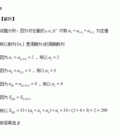 在数列{an}中,若对任意的n均有an+an+1+an+2为定值(n∈N*),且
