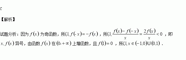 设奇函数f(x)在(0,+∞)上为增函数,且f(1)=0,则不等式