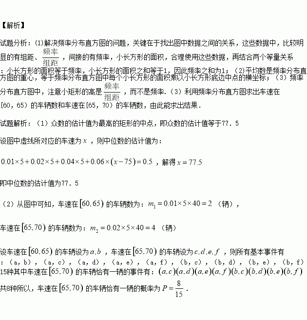 (1)求这40辆小型车辆车速的众数和中位数的估计值;