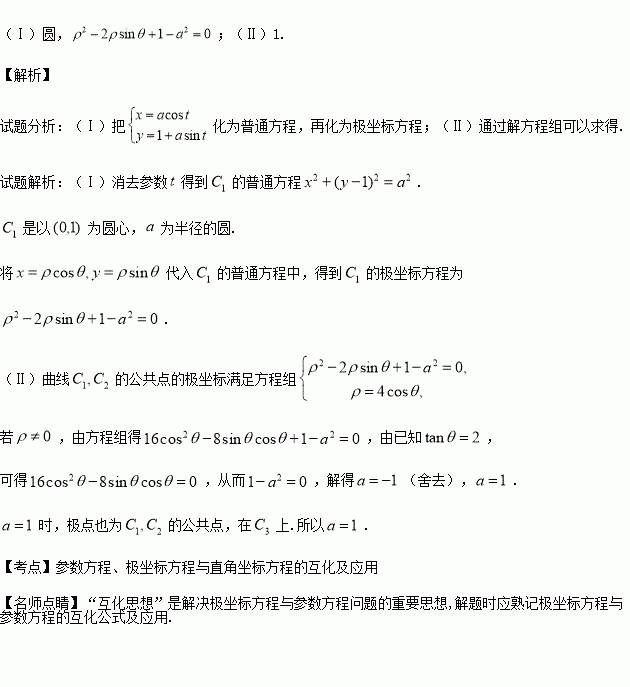(Ⅰ)说明C1是哪一种曲线,并将C1的方程化为极坐标方程;