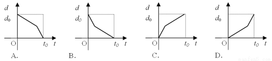 某学生离家去学校,由于怕迟到,所以一开始就匀速跑步,等跑累了再匀速走余下的路程.在下图中纵轴表示离学校的距离,横轴表示出发后的时间,则下图的四个图形中较符合该学生走法的是( )