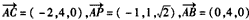 则A(1,-1,0),B(1,3,0),C(-1,3,0),
