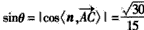 (1)求证:PO⊥面ABCE.(2)求AC与面PAB所成角θ的正弦值.