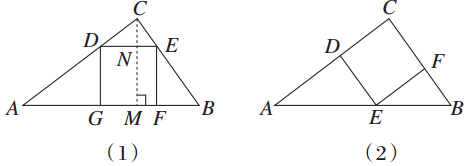 如图(2)所示,设正方形CDEF的边长为y cm,因为EF∥AC,所以△BEF∽△BAC.