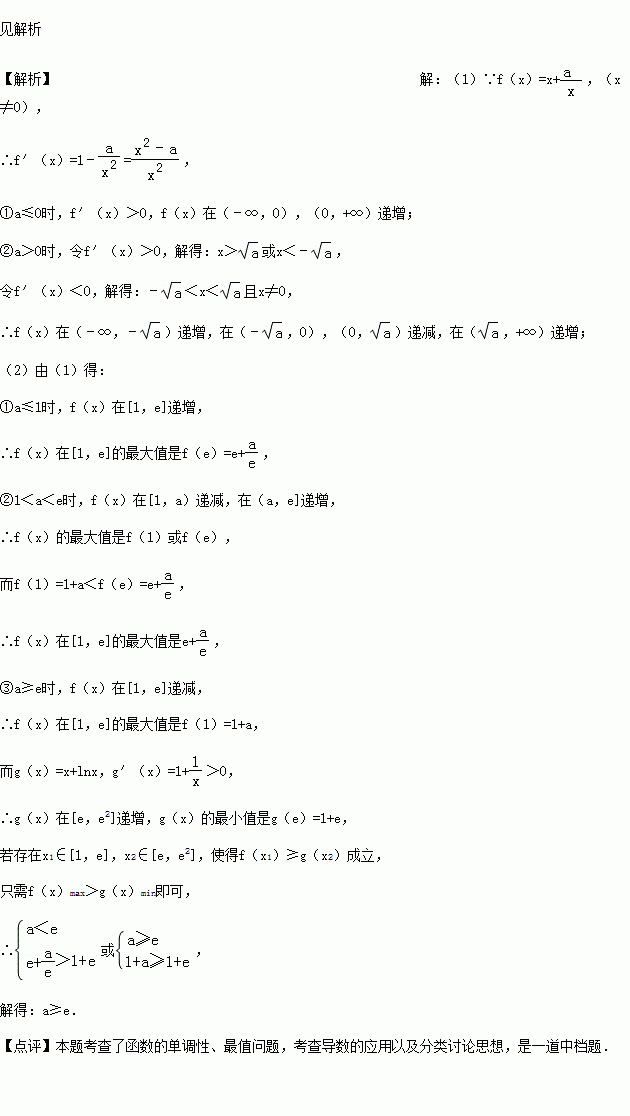 (2)若存在x1∈[1,e],x2∈[e,e2],使得f(x1)≥g(x2)成立,求a的取值范围.