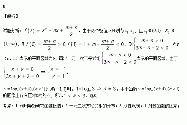 ,点P(m,n)表示的平面区域为D,若函数