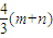 【答案】分析:根据向量加法的平行四边形法则,我们易得,然后根据,我们易将向量进行分解,结合平面向量的基本定理我们易构造关于m,n的方程组,解方程组后即可得到m+n的值.