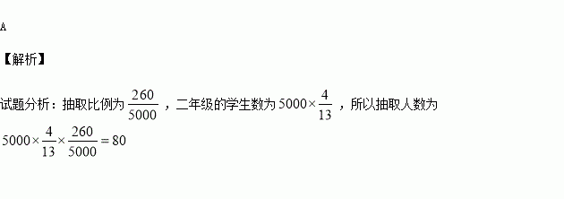 某大学中文系共有本科生5000人,其中一、二、三、四年级的学生比为5:4:3:1, 要用分层抽样的方法从该系所有本科生中抽取一个容量为260的样本,则应抽二年级的学生( )