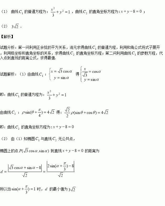 (本小题满分10分)选修4-4:坐标系与参数方程