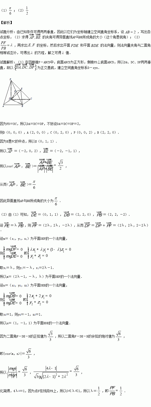 (2)若点F在线段PB上,使得二面角F-DE-B的正弦值为